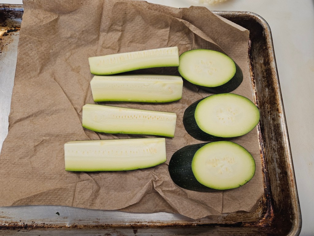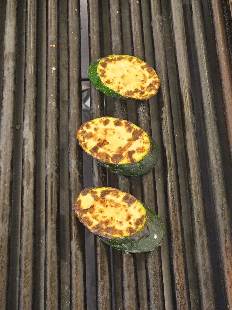You can’t really get the cross-hatch marks on zucchini (correction: I cannot), but you can still get a nice color with proper seasoning and patience.