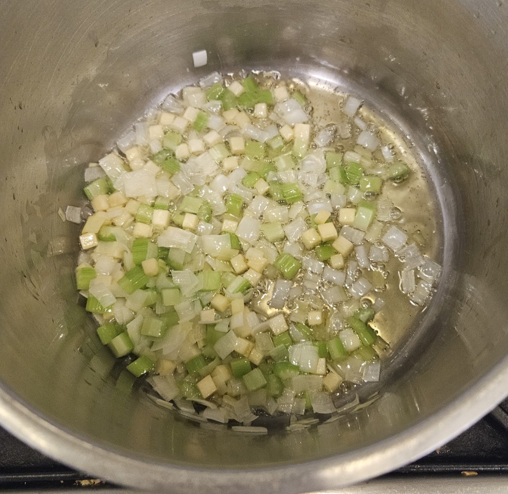 This perspective shift is one of the greatest changes for me as a home cook and future…somehow…professional…food something. Instead of seeing dishes as unique pairings, they are really more like formulaic composites. For example, “rice pilaf” is, according to my cooking textbook, a rice dish in which carrots, celery, and onion are simmered in butter. The rice is then toasted in the vegetable-butter mixture. Stock is added. The rice, carrots, celery, onions, butter, and stock are then cooked in an oven until the rice is tender. If we instead look at “pilaf” as a general method instead of a particular dish, then we have the following: vegetable + fat + grain + liquid + simmering heat (stove top) + radiant heat (oven) = pilaf. Rice can be swapped for bulgur, carrots for parsnips, butter for oil, and so on. Chef’s point was likely not that every single version of every possible pilaf in every universe has been named. Rather, the systems and practices in place mean that cooking is as much a science as an art. Perhaps more so.
