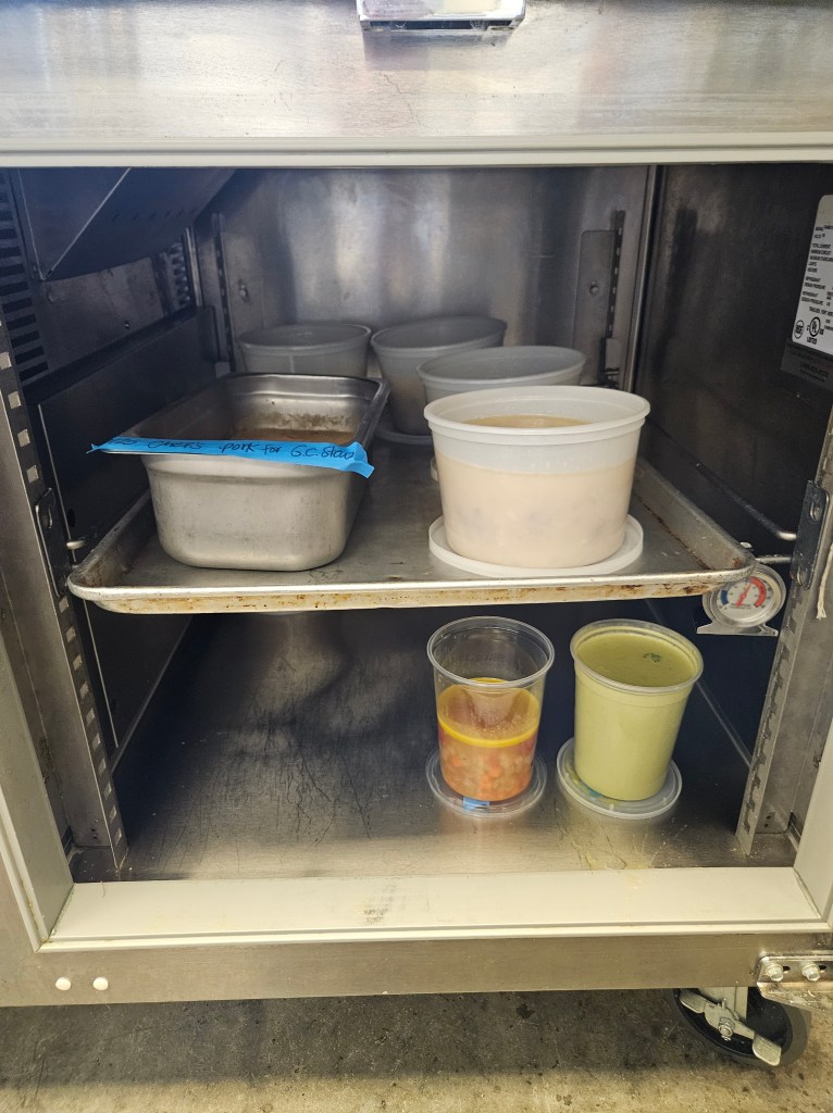We cooked the stew for several hours, over the course of two days. Using the blast chiller, we cooled our work from Day One, so it would be ready for Day Two.