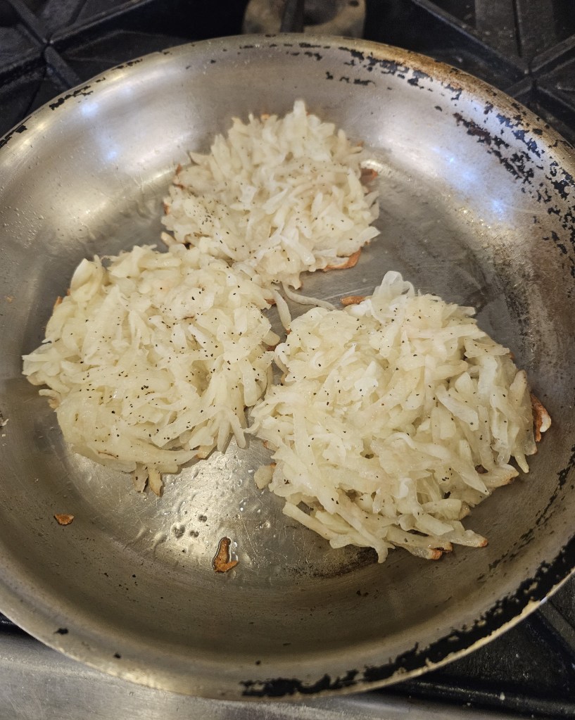 I should not have felt good about these hash browns. Burned on the outside and still raw inside. Once I burned them, I just stopped cooking because they were ruined and I didn’t have time to restart.